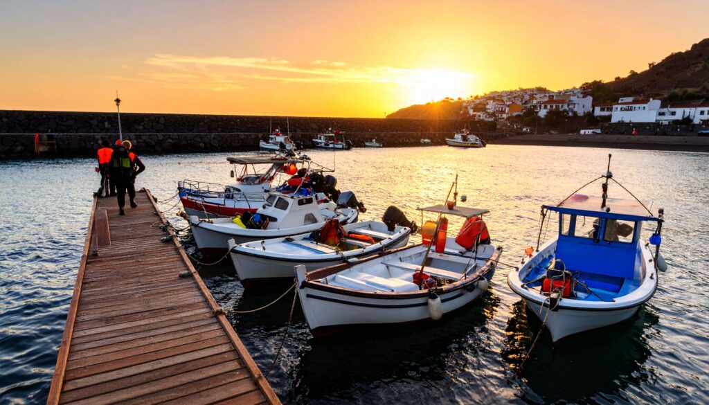 La Restinga ist ein verschlafener Fischerort am südlichen Zipfel von El Hierro – und ein Hotspot für Taucher aus aller Welt. Vor der Küste fallen die vulkanischen Felsen steil ins Meer ab, unter Wasser tummeln sich Barrakudas, Zackenbarsche, Rochen und manchmal sogar Walhaie und Schildkröten. Die glasklare Sicht und die Unterwasservulkane machen die Tauchgänge besonders spektakulär. Auch Nicht-Taucher genießen das entspannte Hafenleben, beobachten Fischer bei der Arbeit oder lassen sich in einer der kleinen Tavernen frischen Fisch servieren. Tipp: Unbedingt ein Sunset-Dinner in einer der Hafenbars einplanen – die Sonnenuntergänge hier sind legendär.